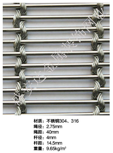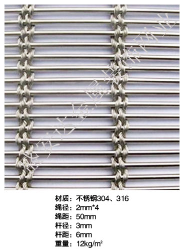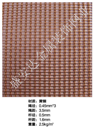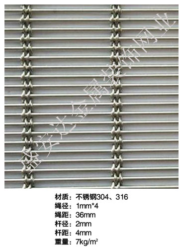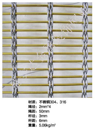 合股裝飾網本產品,采用優質不銹鋼、黃銅、磷銅編織而成,從拉絲、捻股、合繩、拋光、漂洗、織網、銷售及售后服務等方面入手,逐漸形成生產與銷售一條龍服務。產品具有經久耐用,華麗高檔,科技含量高等特點,被廣泛應用于高級建筑的窗簾、吊頂、樓梯、電梯、豪華辦公大樓、賓館、豪華舞廳、營業大廳等建筑物的室內外裝飾,在燈光照射下金碧輝煌,典雅精致。
