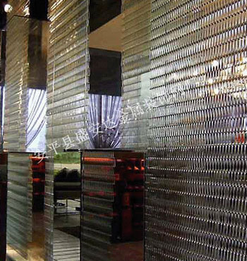 金屬裝飾網,還用于建筑物的立面、隔斷、吊頂、遮陽、陽臺和走廊、卷簾、樓梯通道以及機場車站、賓館酒店、高級別墅、博物館、歌劇院、音樂廳、寫字樓、展廳、商場等的高檔內外裝修等,尤其是天花的立體裝飾更能展現出高雅、通透及樸素大方的視覺效果。